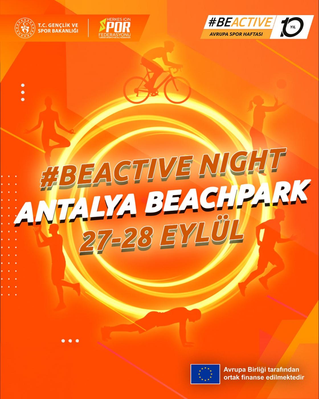 In our country, in addition to the events we will organize in 7 different regions, in 7 provinces, at home and on social media channels, the "Get Moving Night - BeActive Night Events", which is stated as the most important day of the European Sports Week events, will be organized in Antalya Beachpark on September 27 and 28, 2025. After the sporting events to be held throughout the province, a BeActive Night will be organized with the wide participation of our citizens of all ages, from 3 to 93.